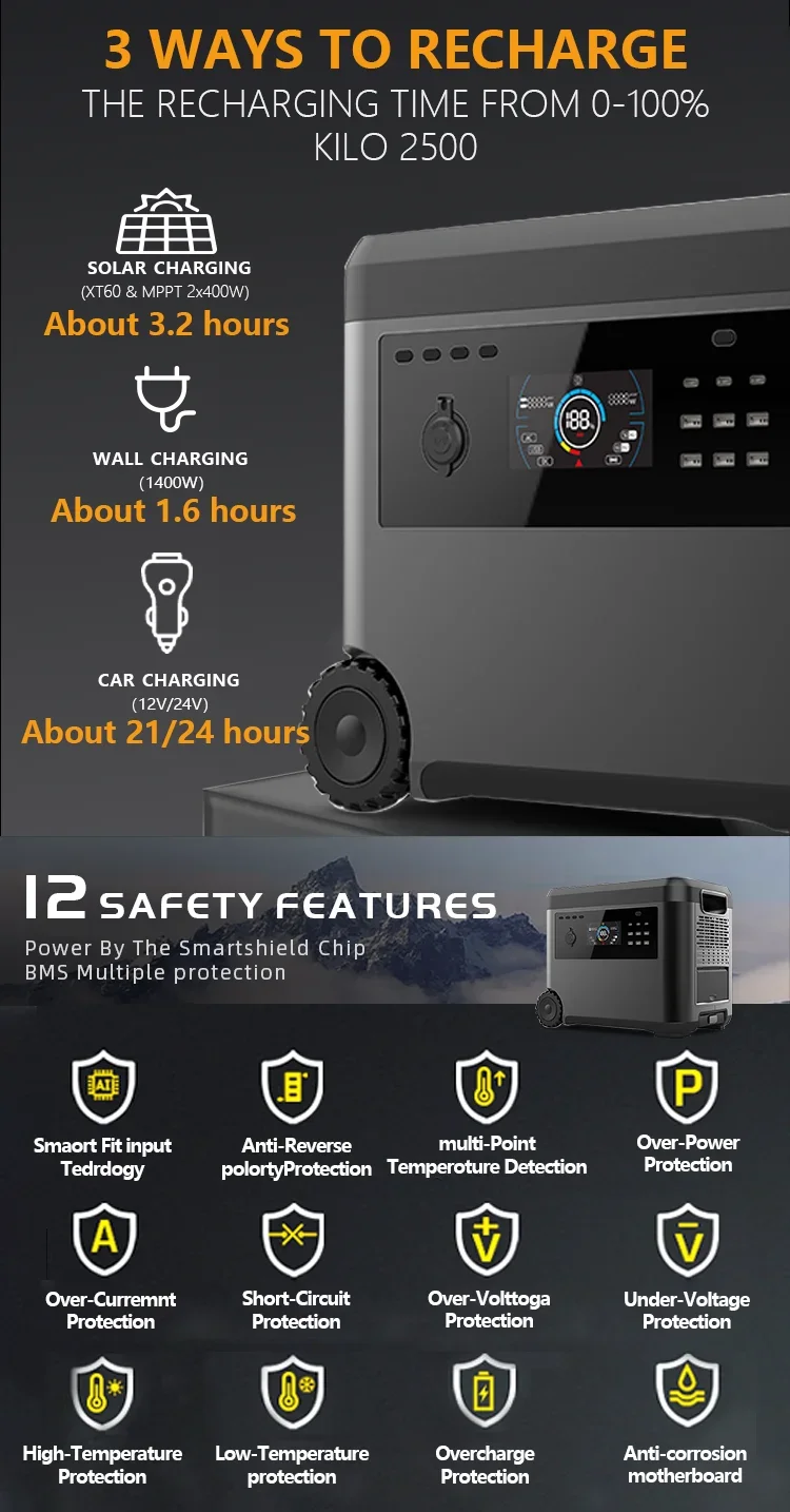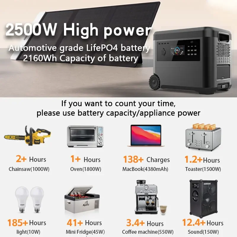 Portable Power Station 2500 W 5000W Solar Generator With 1800Ah Lifep04 Battery Batterie 12Volts 2500Wattes 1500 W Litio